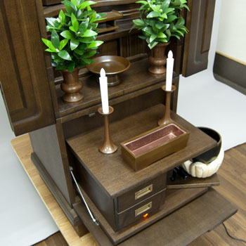 写真掲載の仏具をお付けしています。引出しは2段ございます。