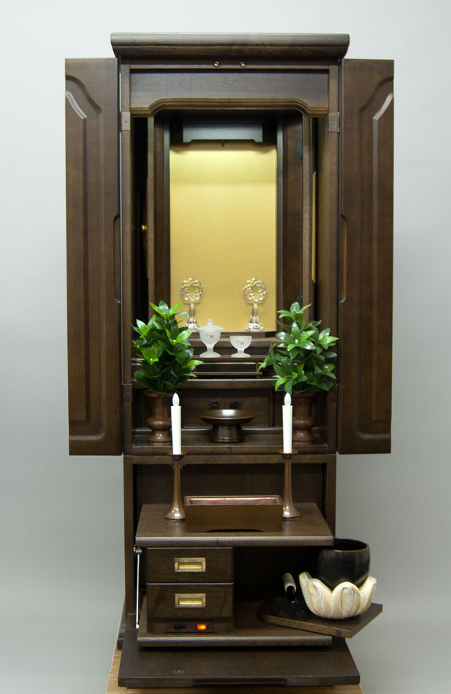 家具調電動式仏壇です。現金先払いのみお取扱い ※ヤマト運輸のらくらく家財便にてお部屋の中までお持ちし、設置作業までいたします。