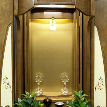 お厨子内は広く明るくすっきりとしています。金色のクリア塗装でお掃除もしっかりと行う事ができますので安心です。