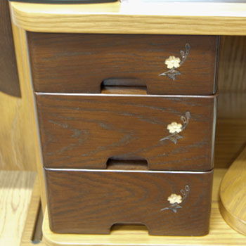 経机の引き出しには桜のお花を木彫りしています