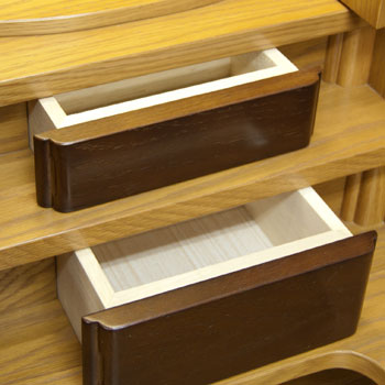 収納式の経机には便利で使いやすい引きだしが4段、リンもしっかりと収納できます。引き出しは桐製。教本・念珠など充分に収納できます。