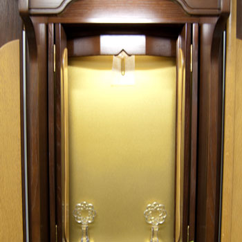 お厨子内は広く明るくすっきりとしています。金色のクリア塗装でお掃除もしっかりと行う事ができますので安心です。