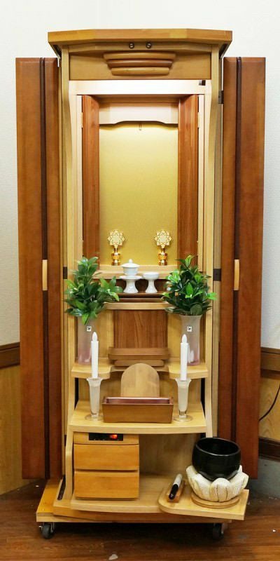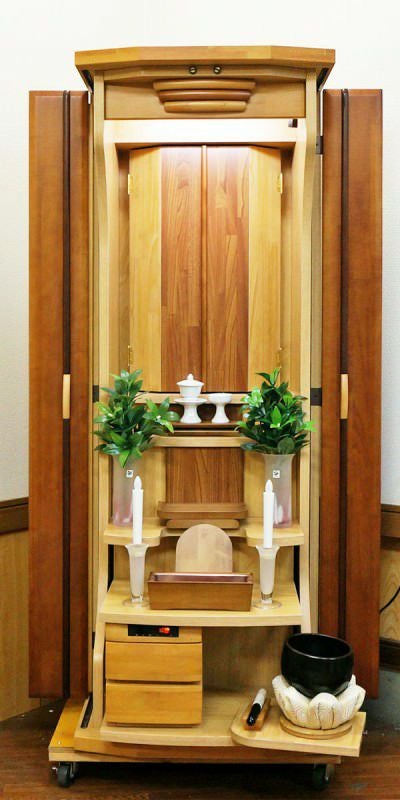 明るくデザイン性ある家具調電動仏壇です。ワンルームにも最適な仏壇です