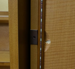 正面扉取っ手部分右側にシート地のは枯れがあります。中古仏壇としての使用感については以上がありませんので、今回は補修を行わずに販売させていただきます。なお、補修ご希望の場合は別途補修費用が加算となりますのでご理解いただきたいと思います。