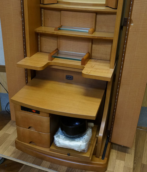 引き出しは、仏壇中段に一つ、机部分に3つあります。リンセット写真掲載仏具をサービス
