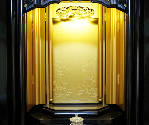 内部には蛍光灯照明も付属していますのでご本尊様を明るく照らしてくれます。