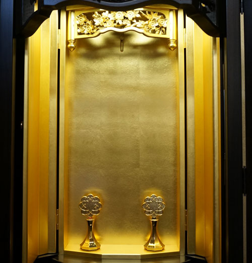 お厨子を開くと美しく煌びやかな本金箔がご本尊様を荘厳してくれます