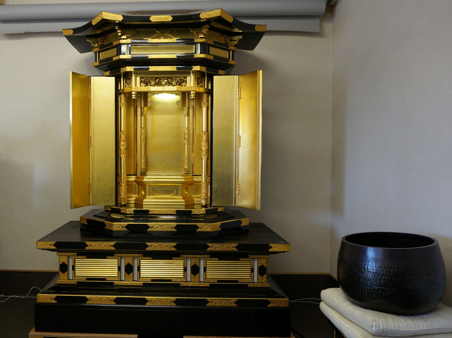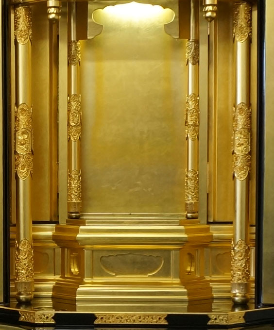 外側の扉と厨子扉が自動扉で連動していますのでとても荘厳で御本尊様を拝する気持ちも一層深くなります