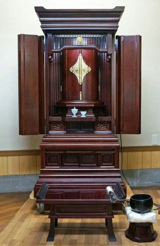 こちらの商品は創価学会中古仏壇287になります。磨きを入れ私が蘇生術を施しました 紫檀会館型の自動開閉する仏壇になります。やさしい紫檀の色合いが優雅な唱題の時間をゆったりと醸し出してくれます。もちろん中古仏壇ですので経年劣化、多少の擦り傷などはございます、この商品は仏壇と写真掲載仏具で価格設定になります。是非当店にて実物のご確認くださいませ。