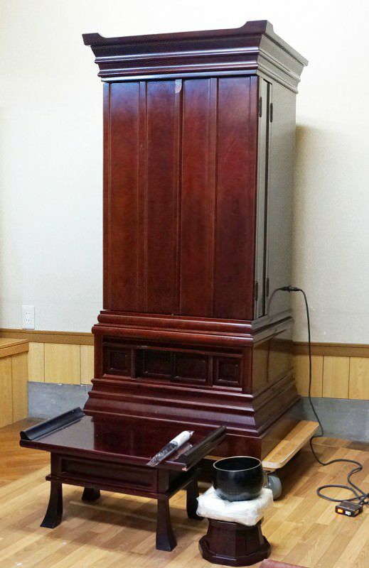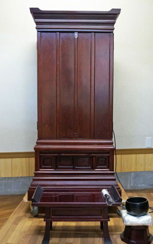 紫檀色会館型電動式仏壇です。拠点や会場に最適な仏壇です