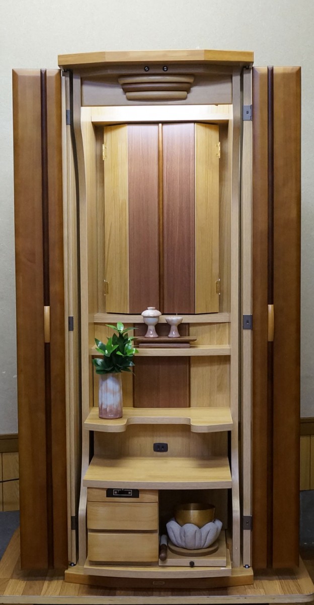 すっきりとした中型の家具調仏壇です。ツートンですっきりとしたデザインになっています