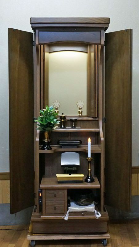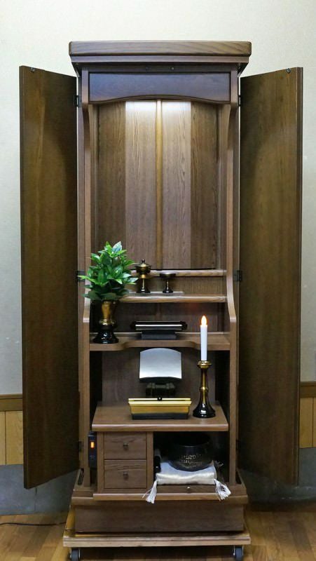 ダークオークの人気の家具調仏壇です。洋間、和室にも最適です、お題目をしっかりと上げたくなる仏壇です
