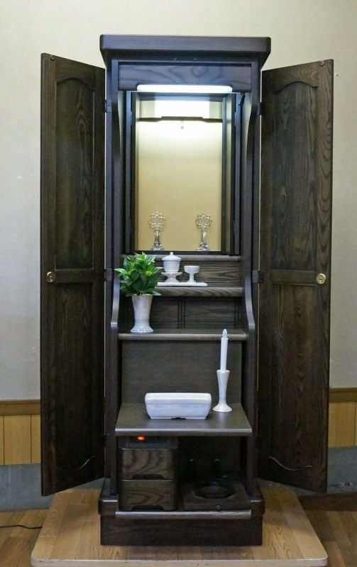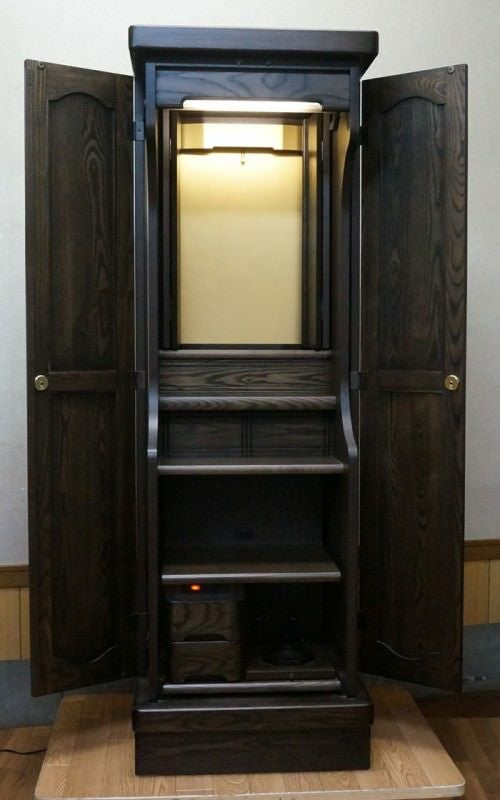 ダークオークの人気の家具調仏壇です。洋間、和室にも最適です、お題目をしっかりと上げたくなる仏壇です