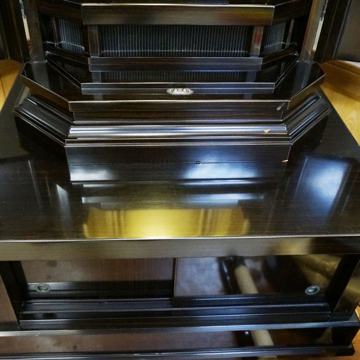 新ジャンル B級中古仏壇として初登場になります!こちらは黒檀の厨子型本格仏壇です。経机、花立て、リンなど独立して設置するタイプです!