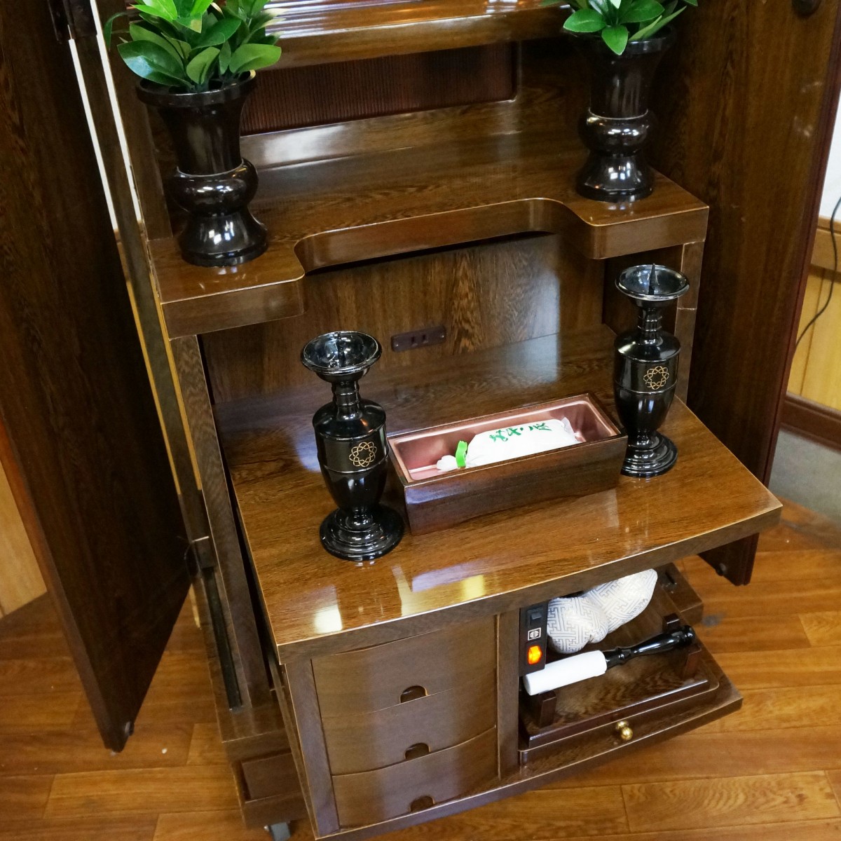 こちらの商品は創価学会中古仏壇337になります、落ち着いた木目と色合いが人気です。ワンルームやマンションなどコンパクトな仏壇です