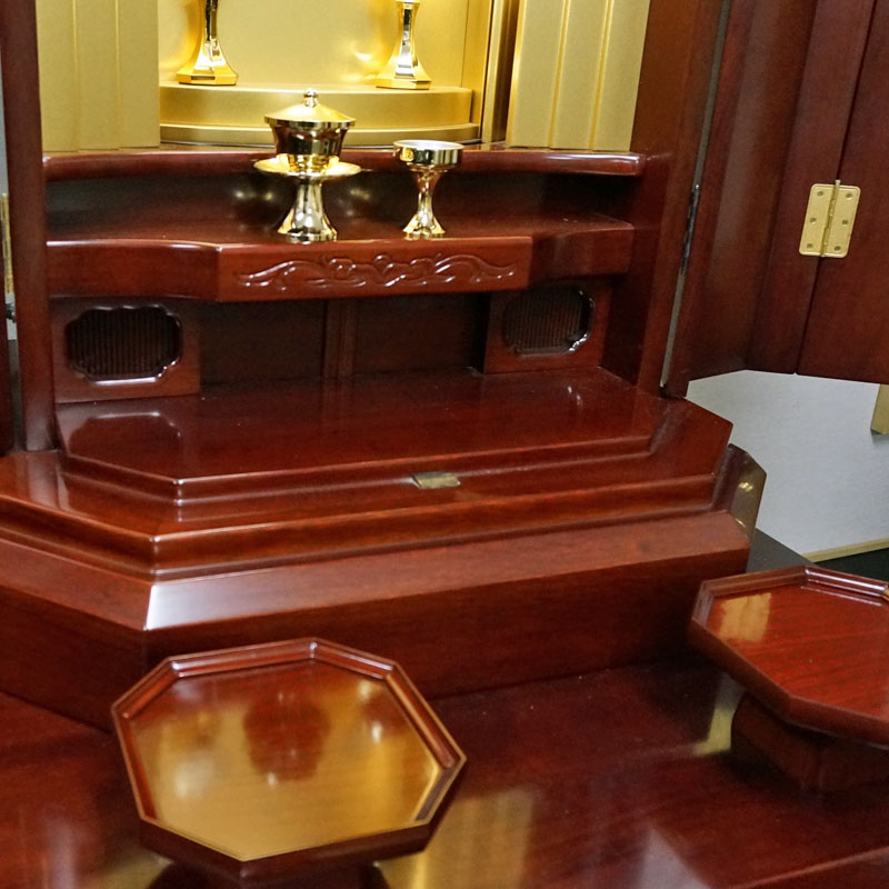 優しく基本あるローズ紫檀の色合いがとても素敵な厨子型仏壇です。