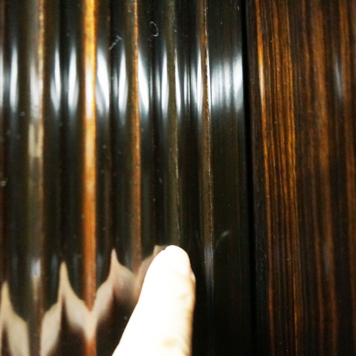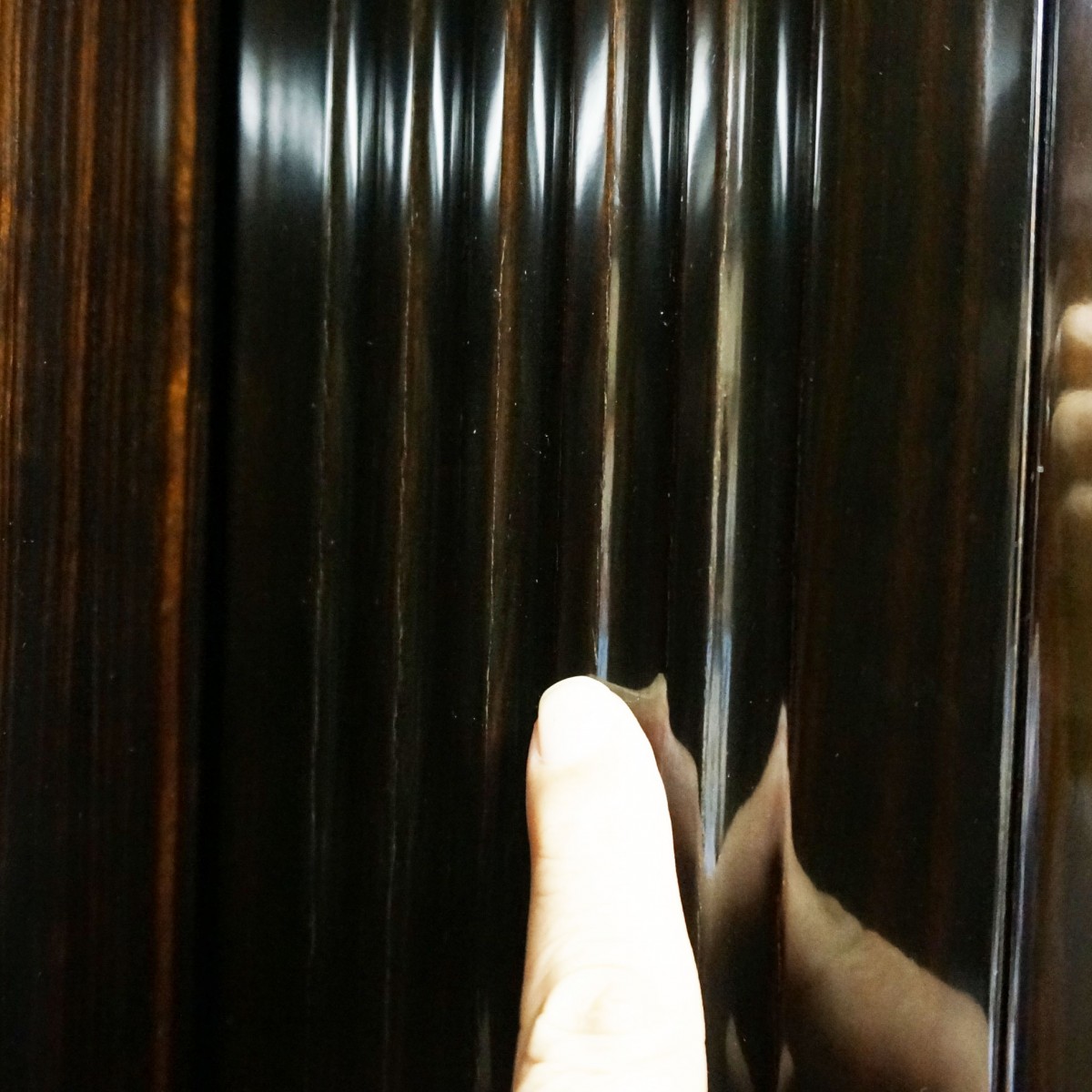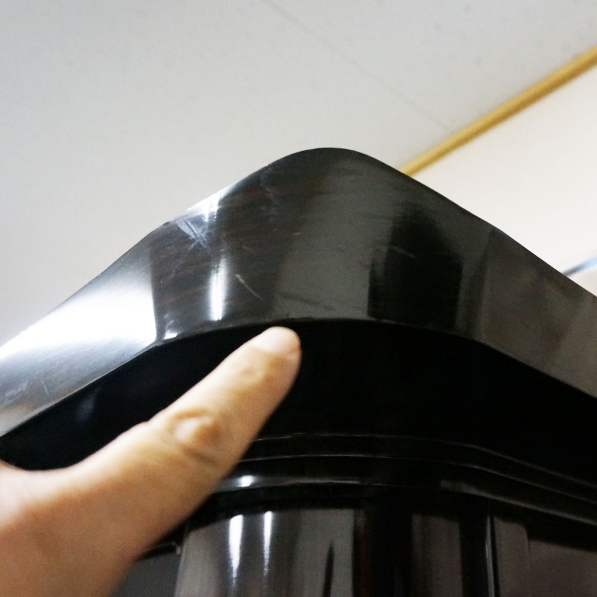 以下、スリキズなどの個所をポイントで示してみました。擦り傷は現状そのままでワックスによりクリーニングいたします。白くなっているポイントは刷毛塗りで黒く塗り直してお届けいたします。