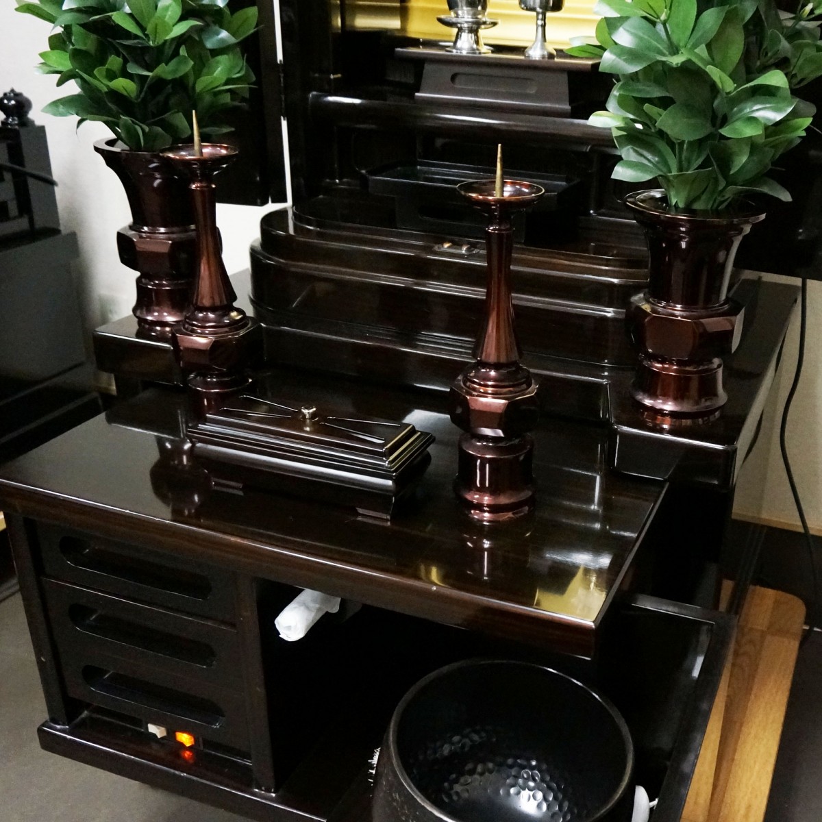 経机、線香箱、リン台などしっかりとした仏具が付嘱しています