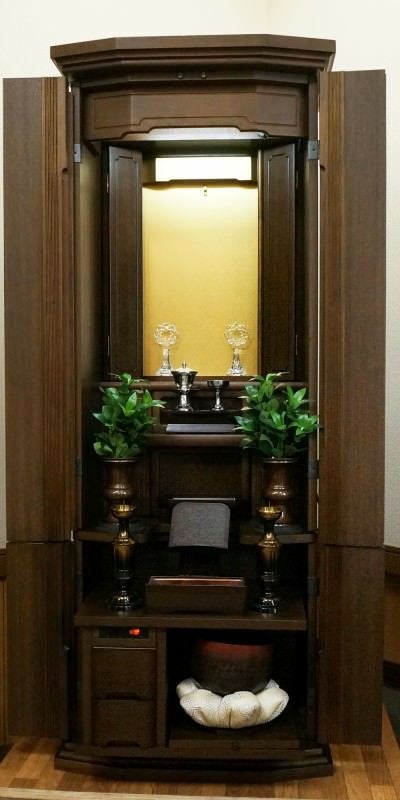 二段重ねの家具調仏壇です。おリンがなかなかいい余韻の音が出ています
