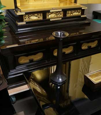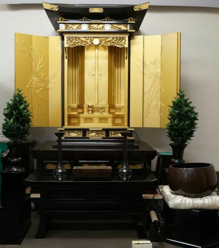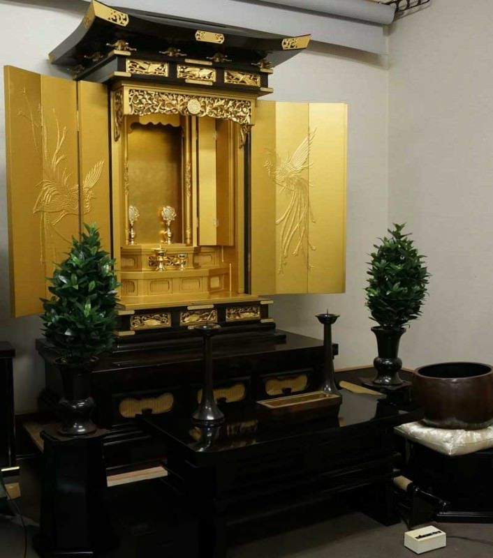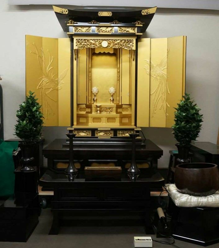 写真掲載仏具付:造花しきみ+お水+ごはん+りん布団は新品になります