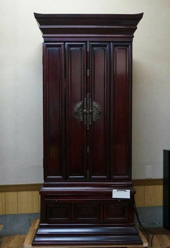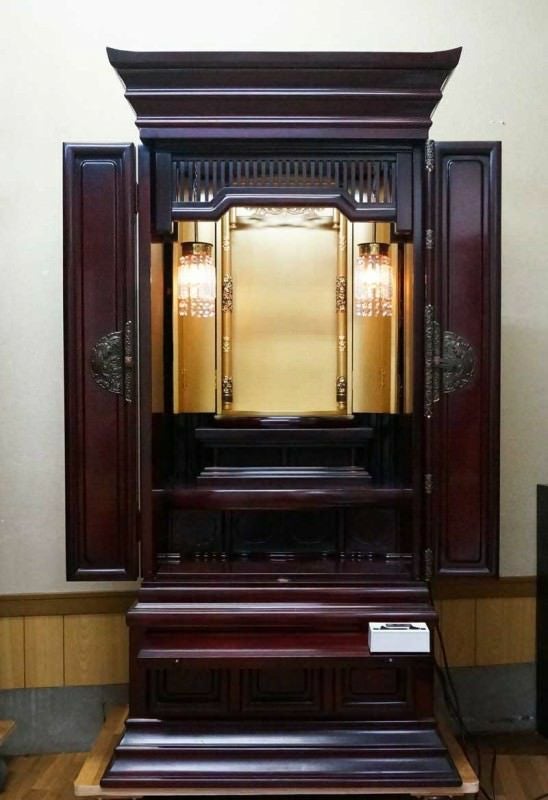 こちらの商品は創価学会厨子型中古仏壇394になります、落ち着いたワインレッドの色合いが老若男女に人気です。