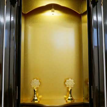 お厨子を開くと美しく煌びやかな金色がご本尊様を荘厳してくれます。内部には蛍光灯照明が付属していますのでご本尊様を明るく照らしてくれます。