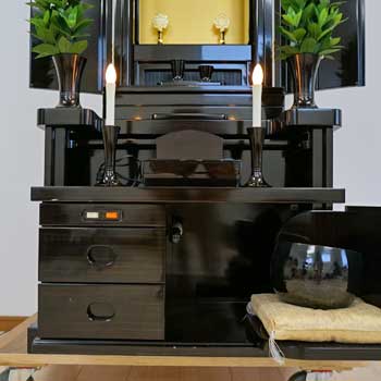 仏壇全体:高さ177cm x 幅73cm x 奥行き60cm