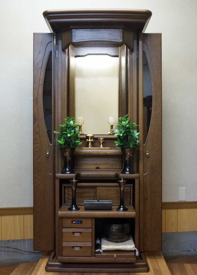 お厨子内は広く明るくすっきりとしています。お掃除もしっかりと行う事ができますので安心です。