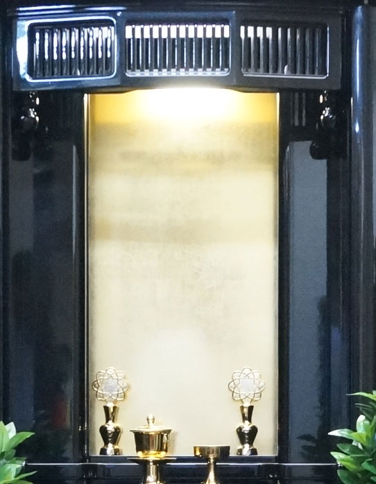 お厨子を開くと美しく煌びやかな金色がご本尊様を荘厳してくれます。内部には蛍光灯照明が付属していますのでご本尊様を明るく照らしてくれます。