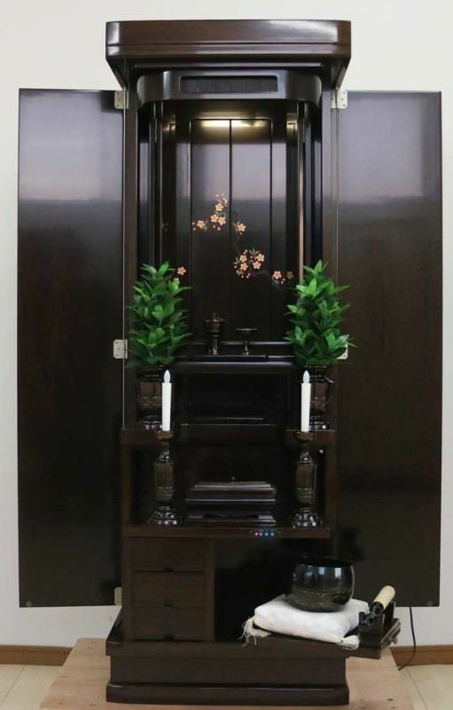シャム柿の優しく穏やかな木目と明るくすっきりとしたデザインが人気の創価学会家具調仏壇です!穏やかでさわやかな気持ちで一日のスタートしていきたいですねこの481は中型家具調仏壇です、扉を広げると会合でも充分対応できる仏壇です家具調では珍しい厨子扉がオープン式とサクラの素敵な蒔絵が施されたスライドの二重構造毎日の勤行唱題の深い意義を常に感じながら、世界広宣流布の誓願の勤行・唱題を水の流れるが如く日々前進の人生をおくれるそんな想いのこもった仏壇です。