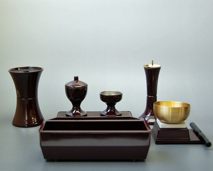 こちらのお仏壇には、基本仏具がセットになっております。 こちらもお客様の好みに合わせて下記仏具セットからカスタマイズしてお好みの仏具をお選びください。