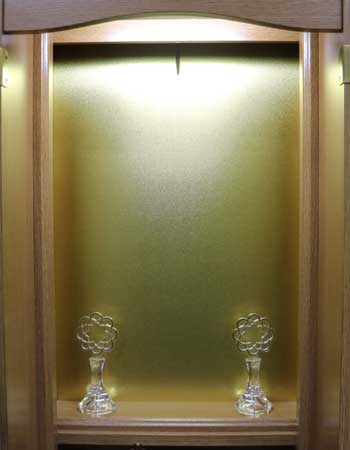 お厨子を開くと美しく煌びやかな金色がご本尊様を荘厳してくれます。内部にはLED照明も付属していますのでご本尊様を明るく照らしてくれます。