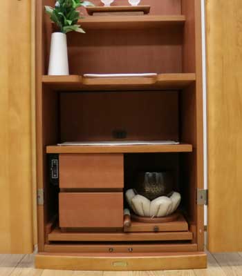 都会的なツートンデザイン、温かみのある色合いの中古家具調仏壇 の登場です! さわやかな勤行・唱題で毎日が爽快にスタートできる事でしょう.中古仏壇489は明るい色あいですっきりとご本尊様の前からスタートできる仏壇です。仏具もシンプルに必要なものだけ、お水・ご飯はガラス製の可愛いものをお付けしました。