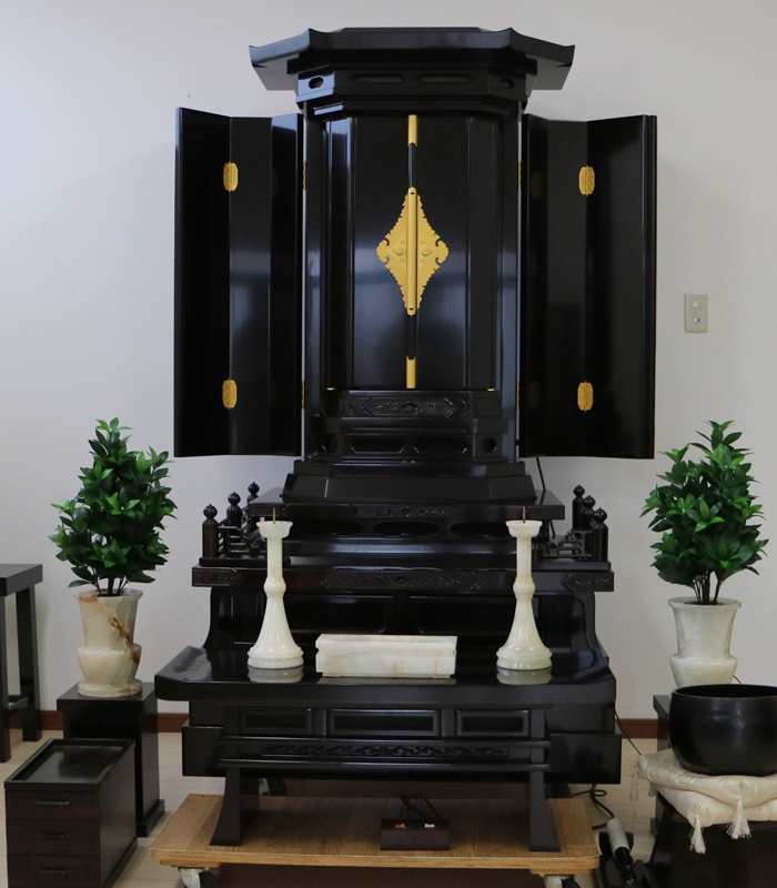 掲載仏具がつきます。仏具の追加は別途承ります。
