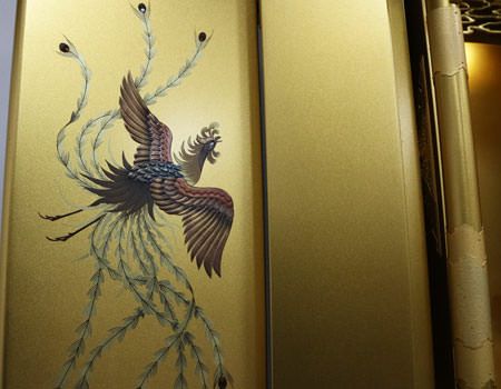 扉を開けたところに、蒔絵がございます。