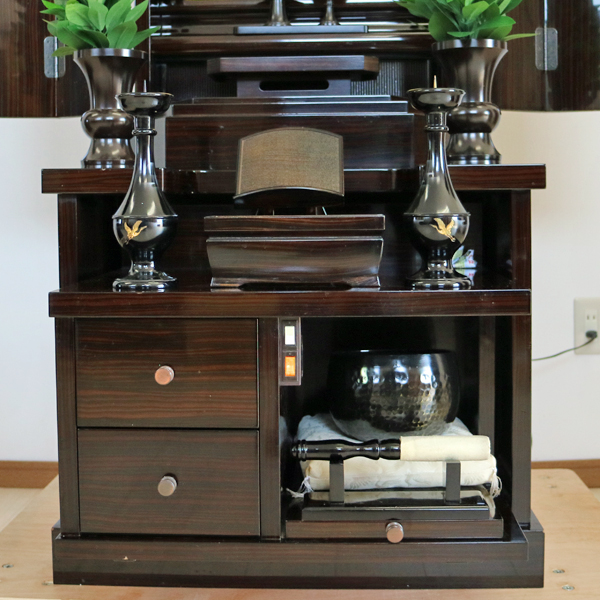 電動式でお厨子開閉しています。引き出しも2つあり、お数珠入れに最適です。