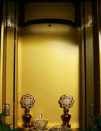 お厨子内は広く明るくすっきりとしています。金色のクリア塗装でお掃除もしっかりと行う事ができますので安心です。