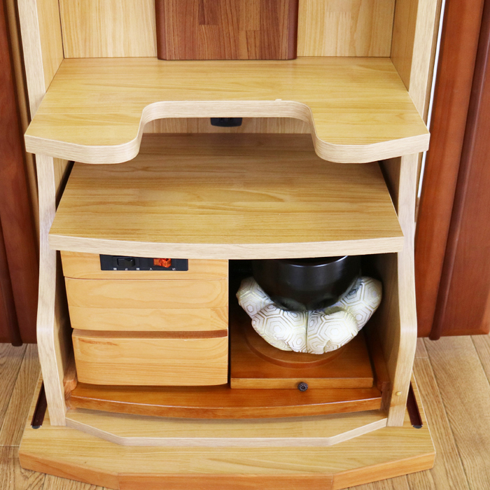 こちらのお仏壇には、収納経机・収納リン台となっておりとても便利です。