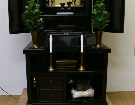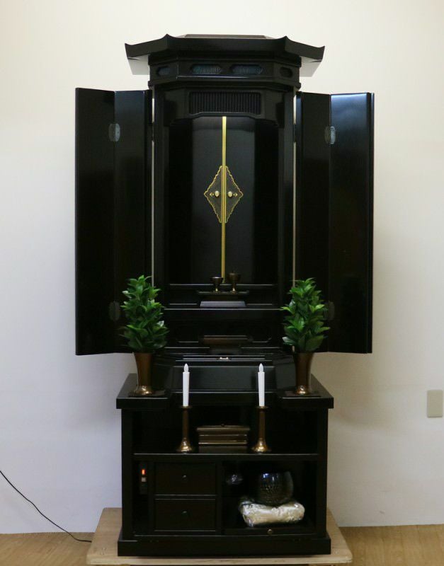黒檀厨子型収納仏壇、拠点・会場用に最適、椅子仕様でもご本尊様の位置もちょうど良い高さをご提供します。
