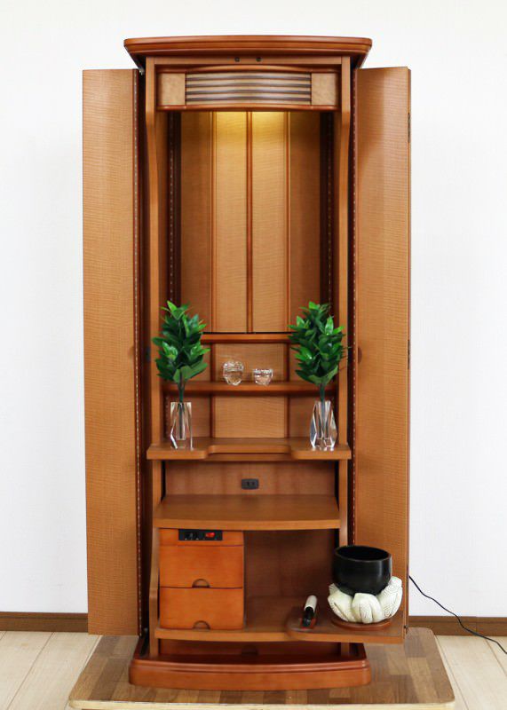 すっきりさわやかデザイン家具調仏壇、拠点・会場用にも最適、明るい色合いと新品のクリスタルがベストマッチ