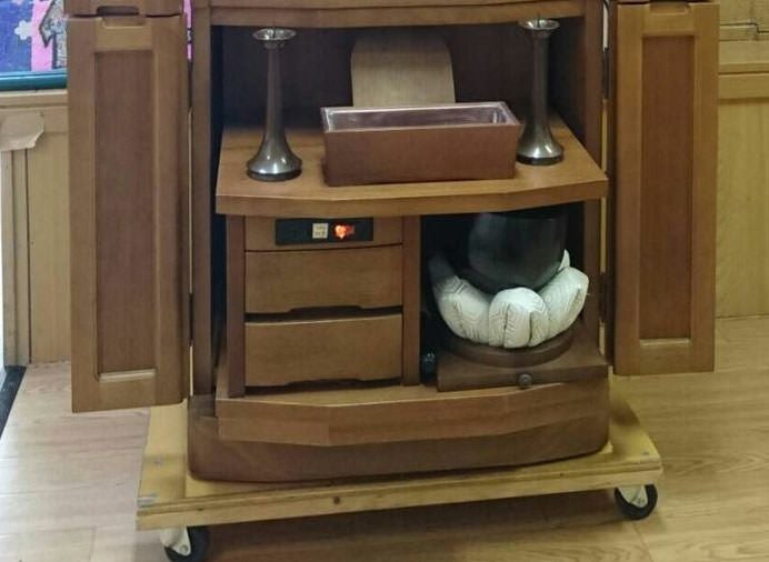 こちらのお仏壇には、収納経机・収納リン台となっております。