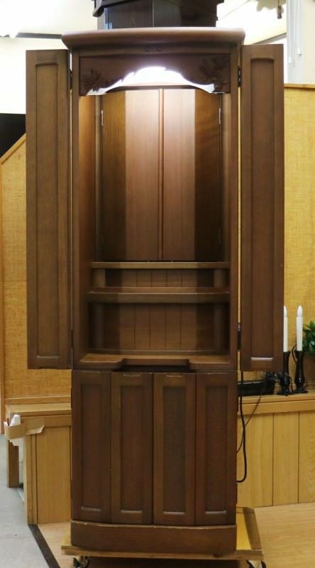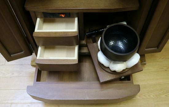 収納式経机と収納回転式リン台・引き出しがついて、機能的です。