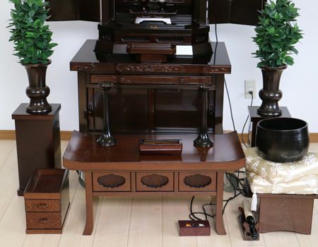 (仏器茶器は、新品の仏具をお付けさせていただきます。)