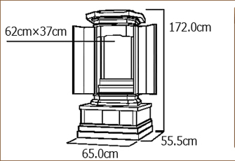 仏壇全体: 高さ172cm x 幅65cm x 奥行き55cm