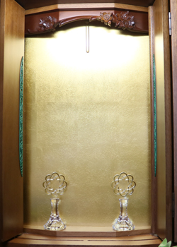 お厨子内は広く明るくすっきりとしています。金色のクリア塗装でお掃除もしっかりと行う事ができますので安心です。