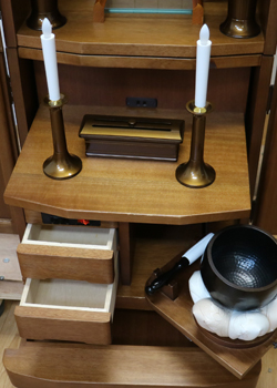家具調中古仏壇546は。りんとフトン、仏具置き、三宝以外はすべて新品仏具をサービスでお付けします