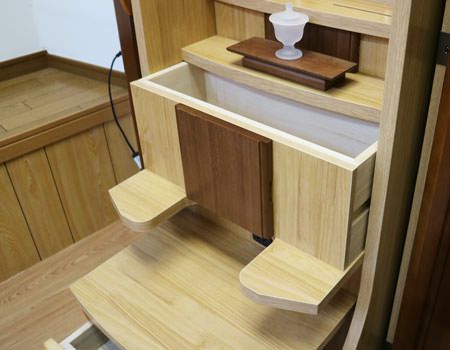 こちらのお仏壇には、収納経机・収納リン台となっております。