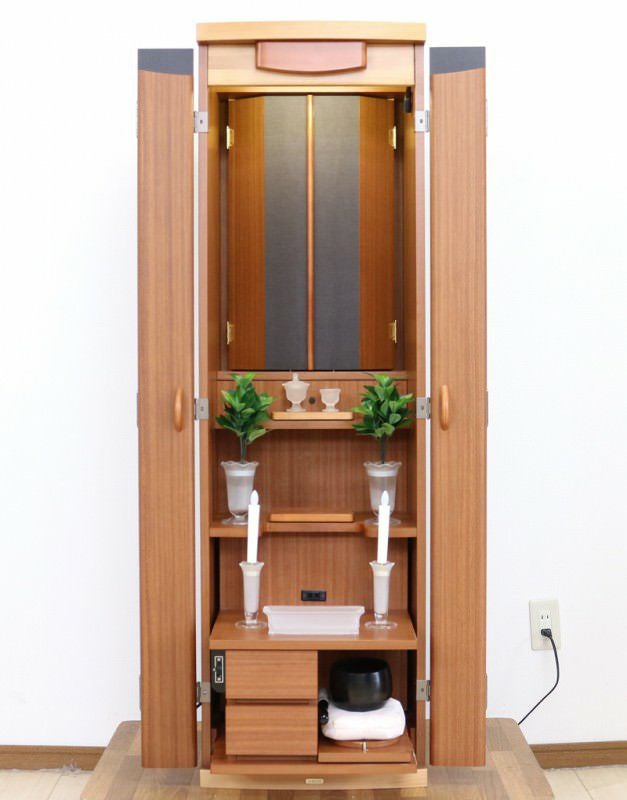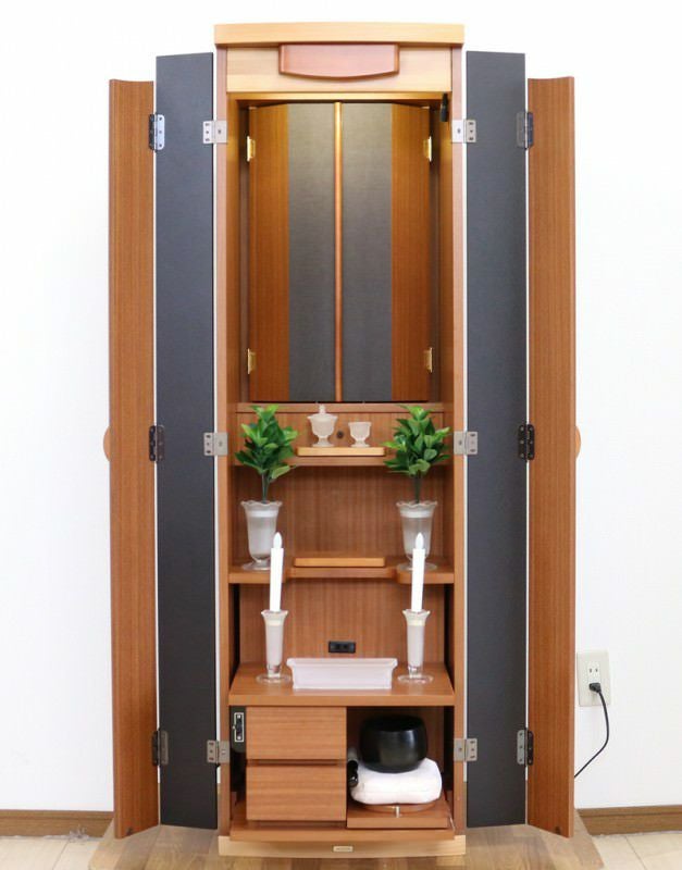 今までのお仏壇のデザインではなかった、オシャレな雰囲気漂うデザインに仕上がっております。暖かみあふれる明るい印象をお部屋にプラスしてくれます。