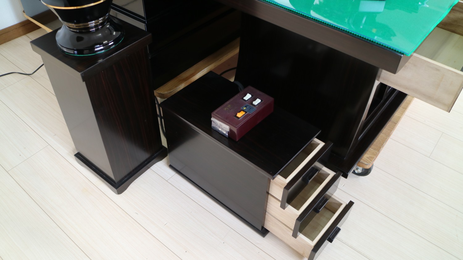 線香箱に三段の収納。経机は二箇所の引き出しがございます。