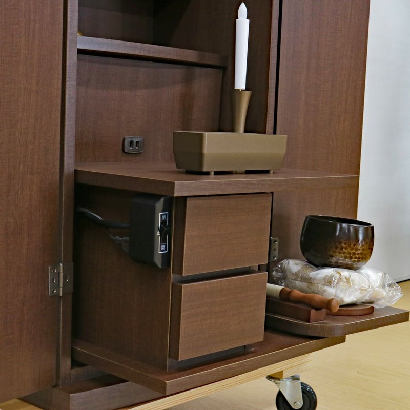 ✔ 国産・家具調の誇り: 日本の職人が魂を込めて仕上げた、電動厨子扉完備の逸品。